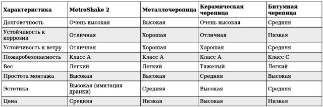 Сравнение MetroShake 2 с другими кровельными материалами: