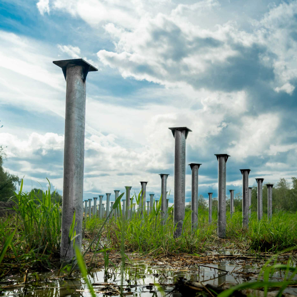 - Быстрый монтаж: Установка винтовых свай занимает всего несколько часов или дней, в зависимости от объема работ. Это значительно быстрее, чем традиционные методы обустройства фундамента (например, заливка бетонной плиты).